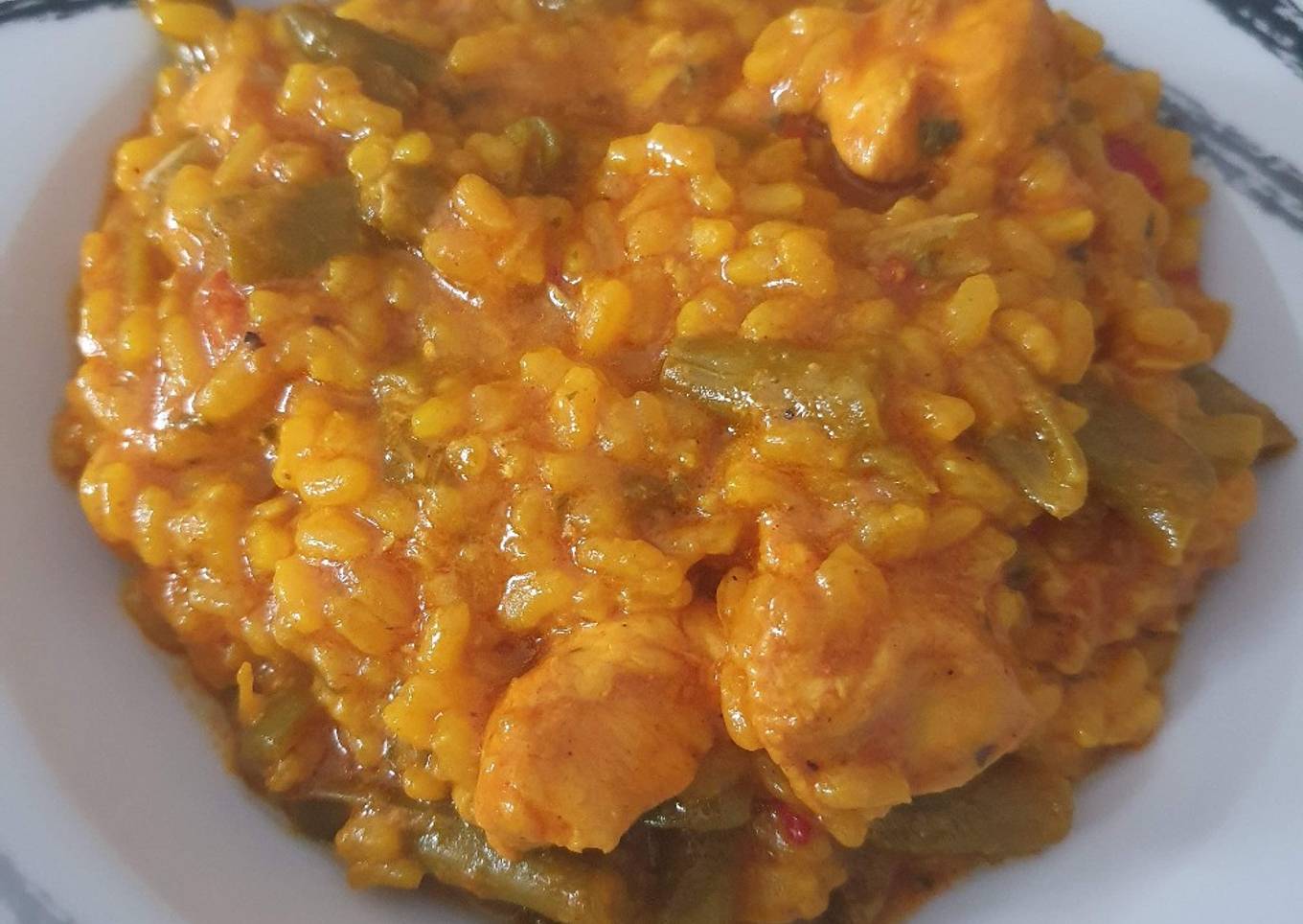 Arroz meloso con pollo y judías verdes