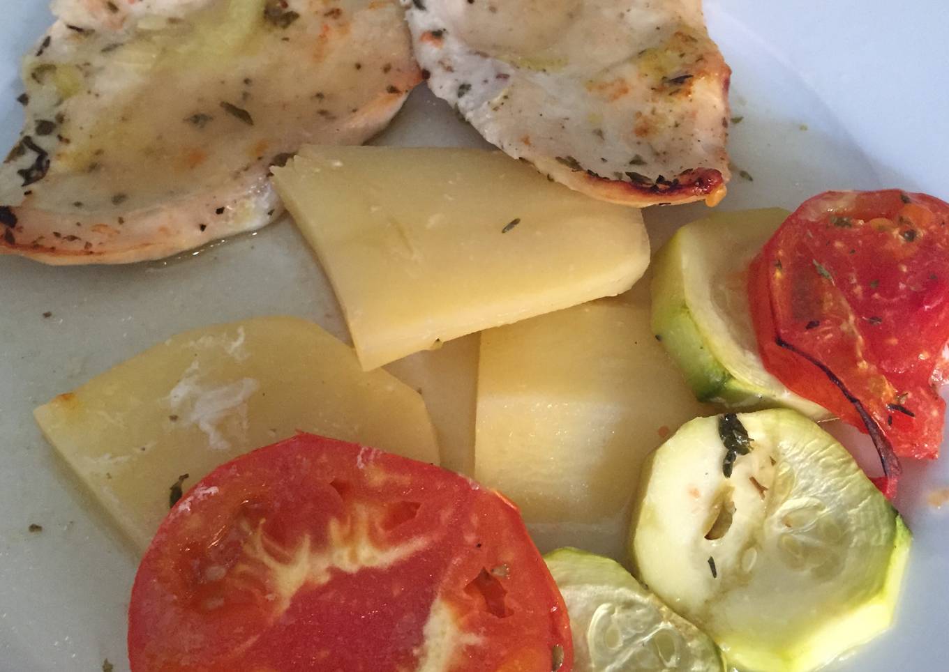 - Se colocan las verduras en una fuente y se les pone sal, un poco de pimienta y un poco de orégano.