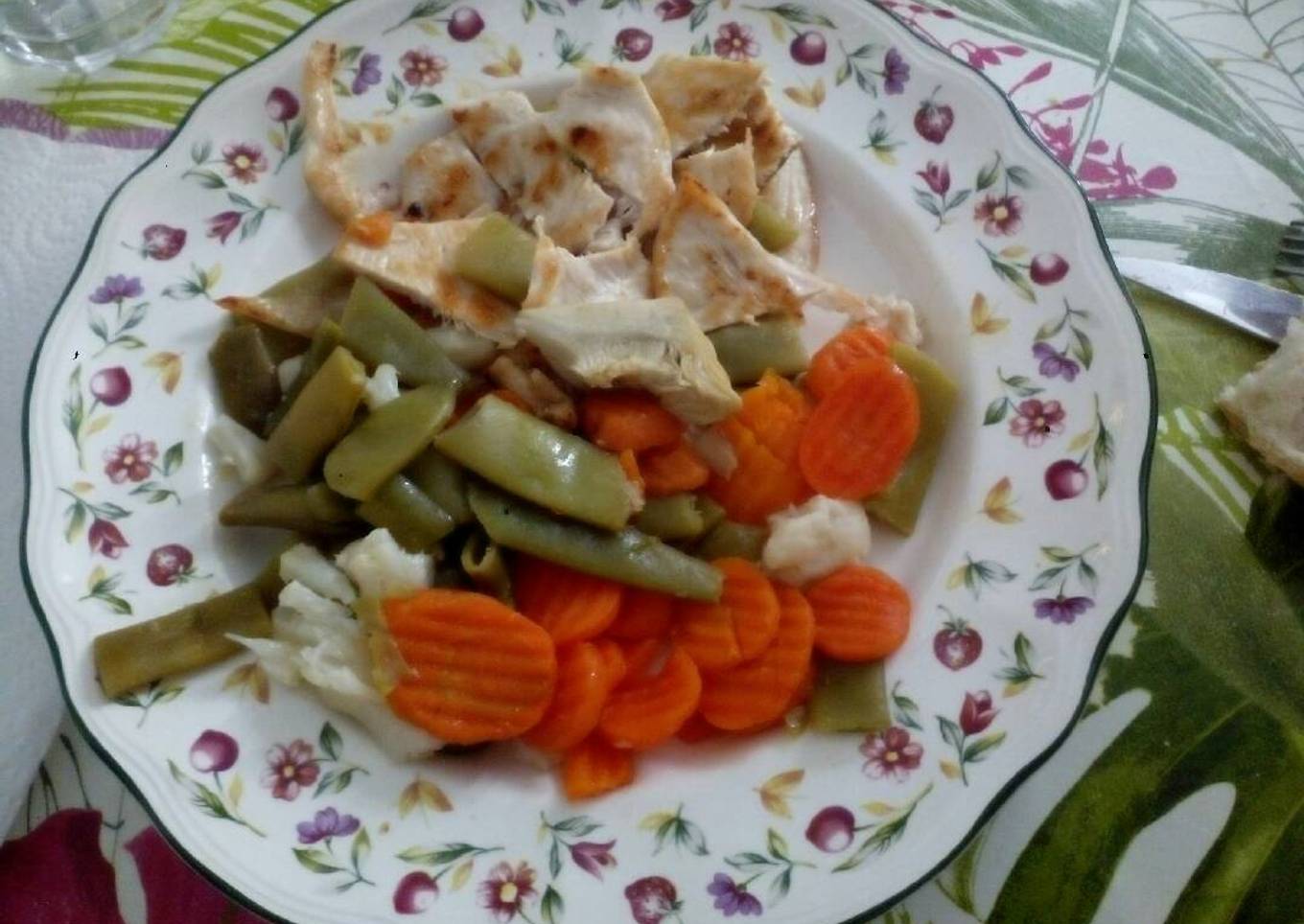 - luego en un plato se ponen las verduras y la pechuga y a comer