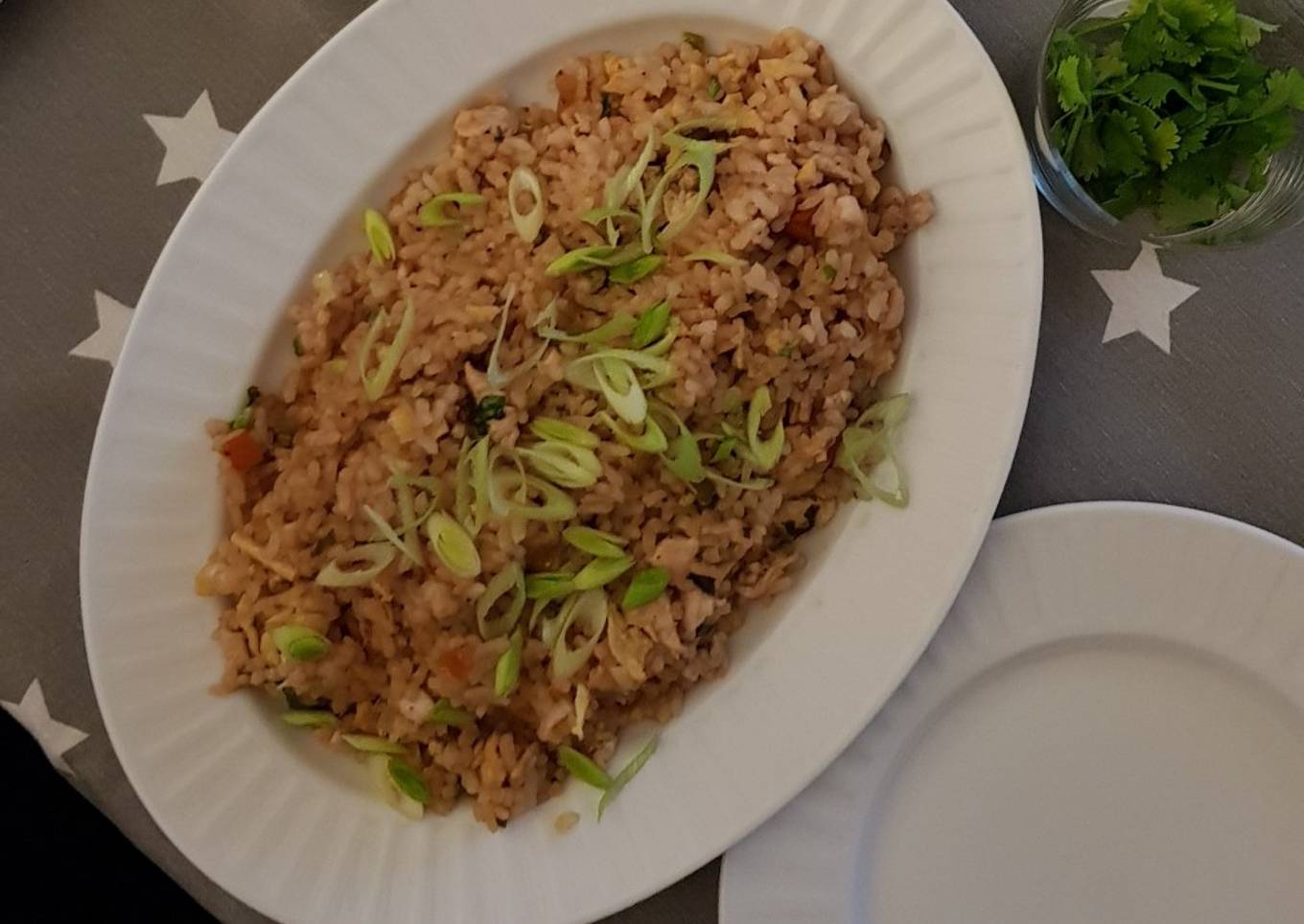 As for the number of servings that can be served to make Arroz chaufa is 2 raciones. So make sure this portion is enough to serve for yourself and your beloved family.