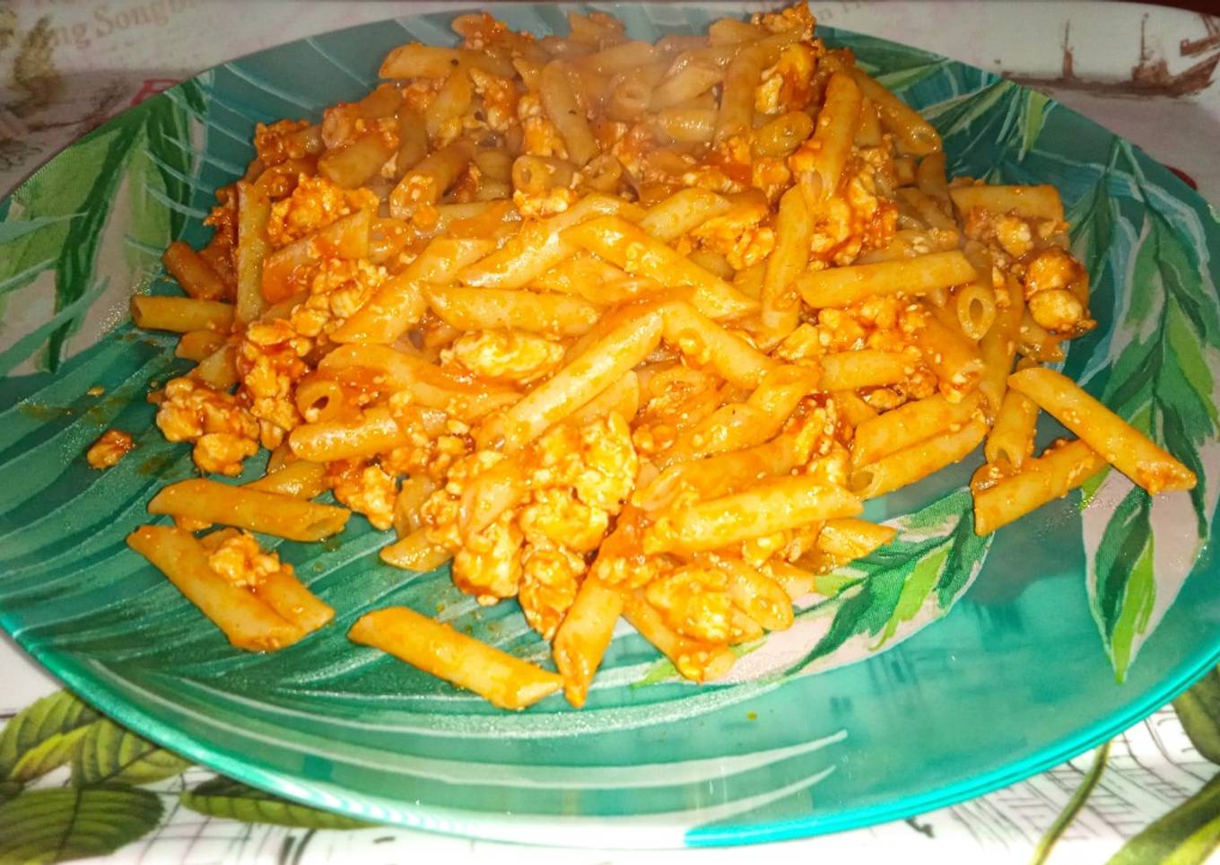 - Una vez hervidos los macarrones, escurrir el agua y mezclar con el sofrito de pollo.