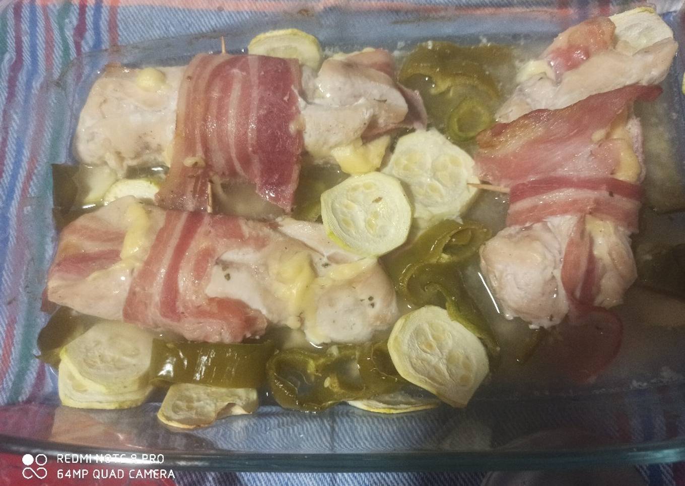 - A continuación ponemos encima la otra mitad del filete y la enrollamos con otra tira de bacon y le ponemos un palillo de dientes para que no se abra.
