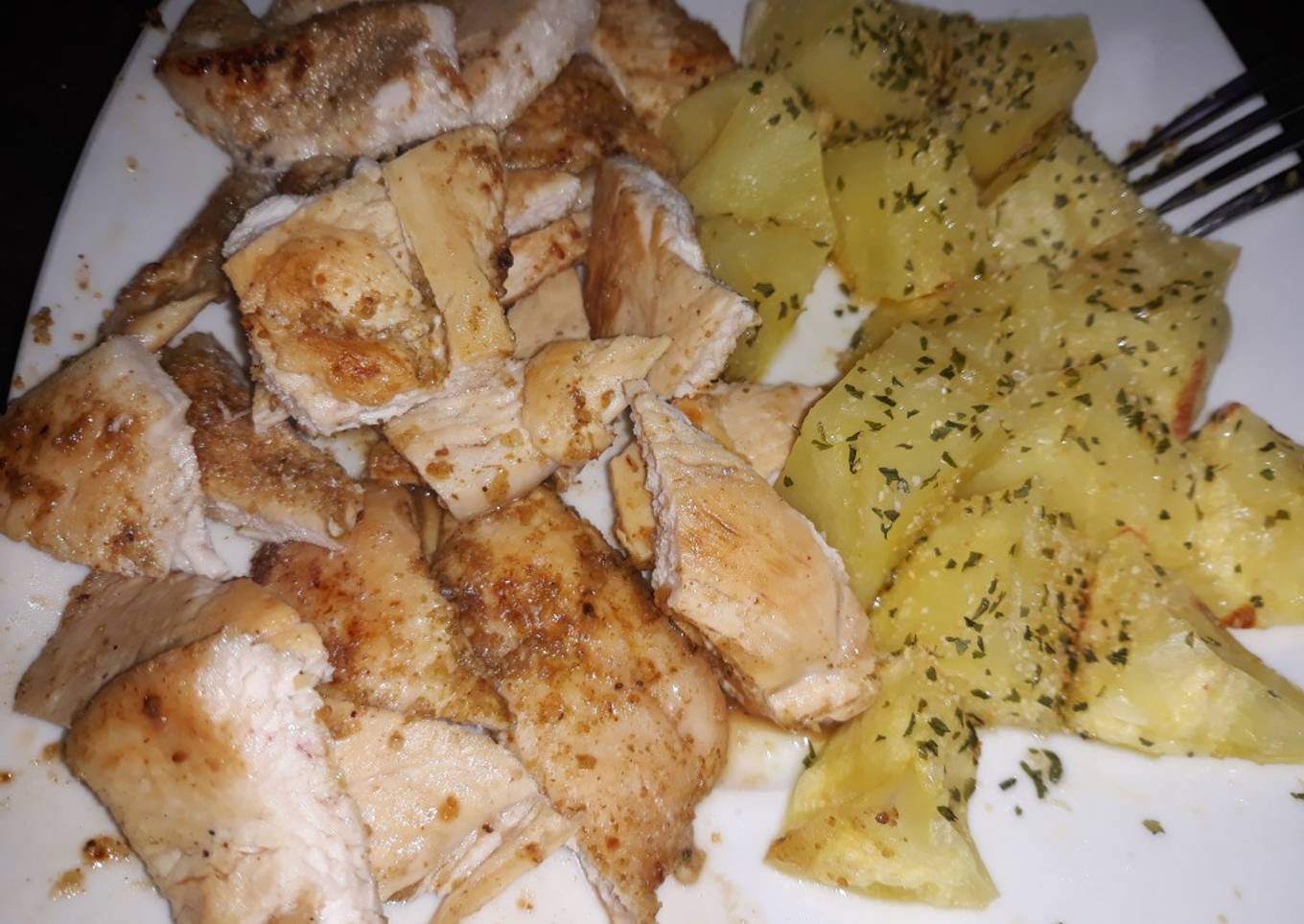 - Mientras se hace la patata, poner los filetes en la otro plato y salpimentamos al gusto y también le puse cebolla y ajo en polvo.