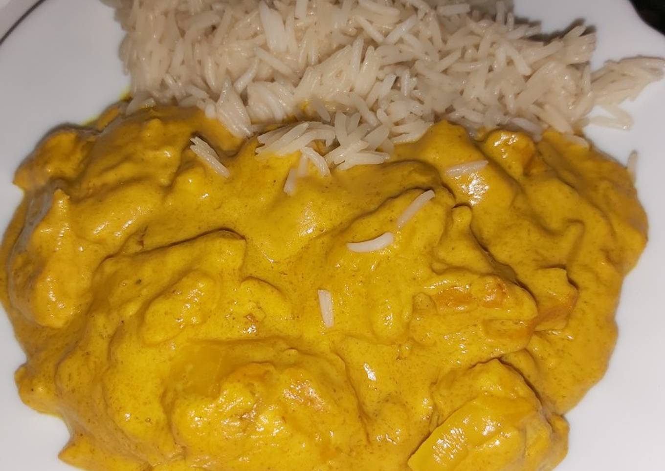 Pollo al curry con cebolla.