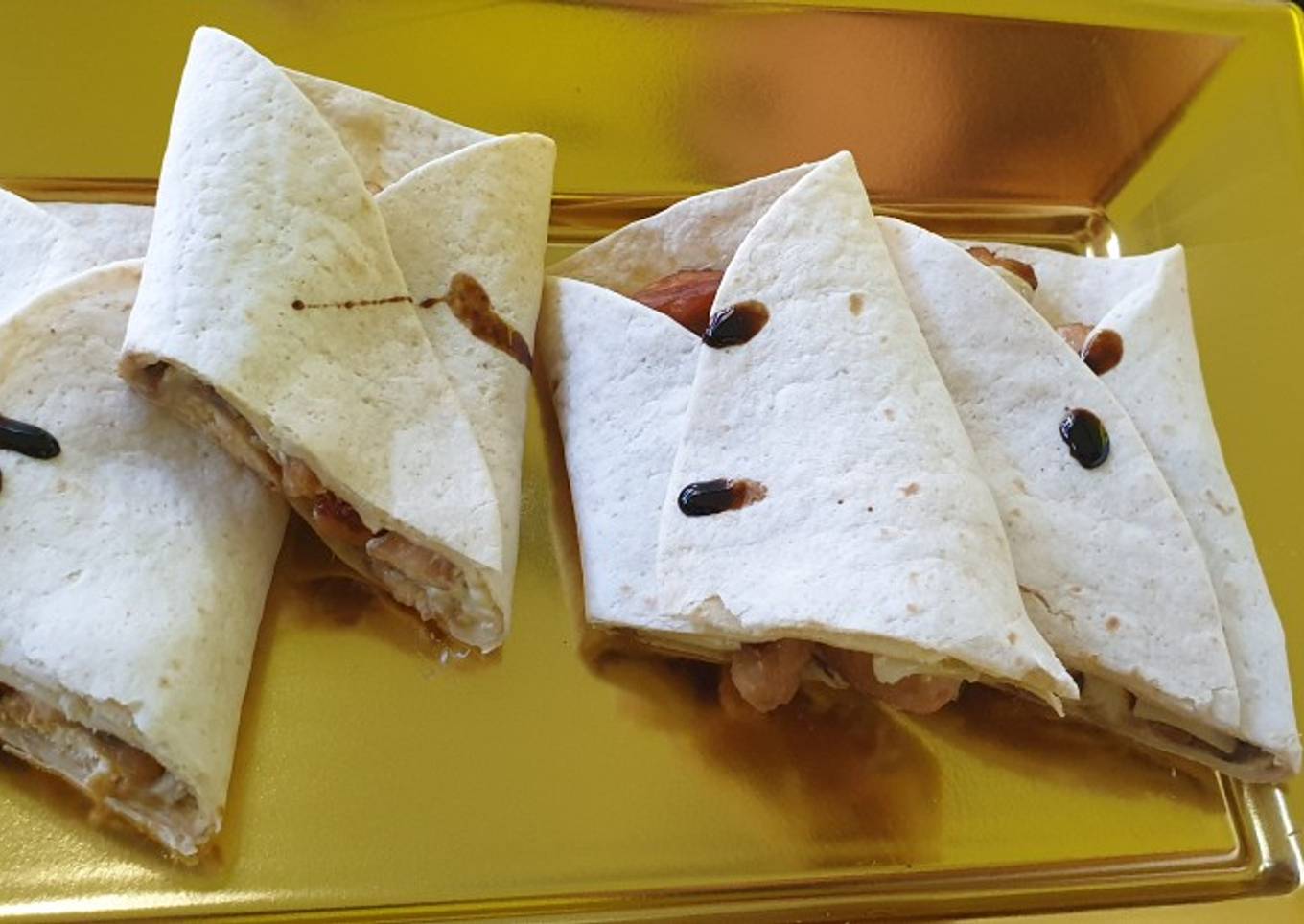 - Procedemos al montaje de la fajitay añadir un poco de queso palmesano y cebollino, calentar 10 minutos en horno.