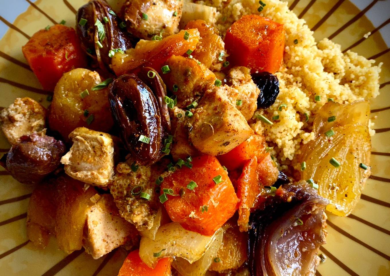 #DelantalDorado #RecetasFit #Pollo #Rustidera #RasElHanout #Árabe #Exotic #CousCous #Sémola #Horno #Verduras #Cuarentena #RecetasDeCuarentena