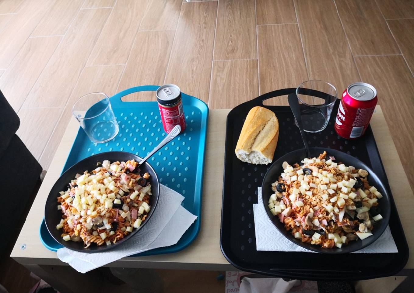 - Cocer la pasta según las indicaciones del embalaje, colar y dejar reposar, yo prefiero lavarla un poco y echar un chorro de aceite por encima y remover para que queden más sueltos y se enfríen