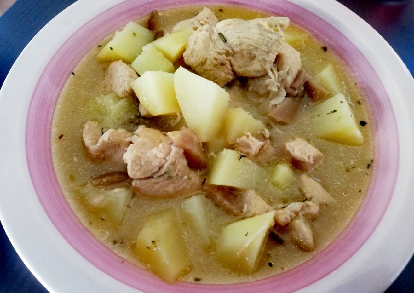 - Metemos el pollo y añadimos el zumo de naranja y dejamos a fuego lento durante 40 minutos. Si vais a comerlo en el momento le ponéis las patatas peladas y cortadas al gusto. Si no es al momento no os recomiendo añadirlas porque quedan fatal.