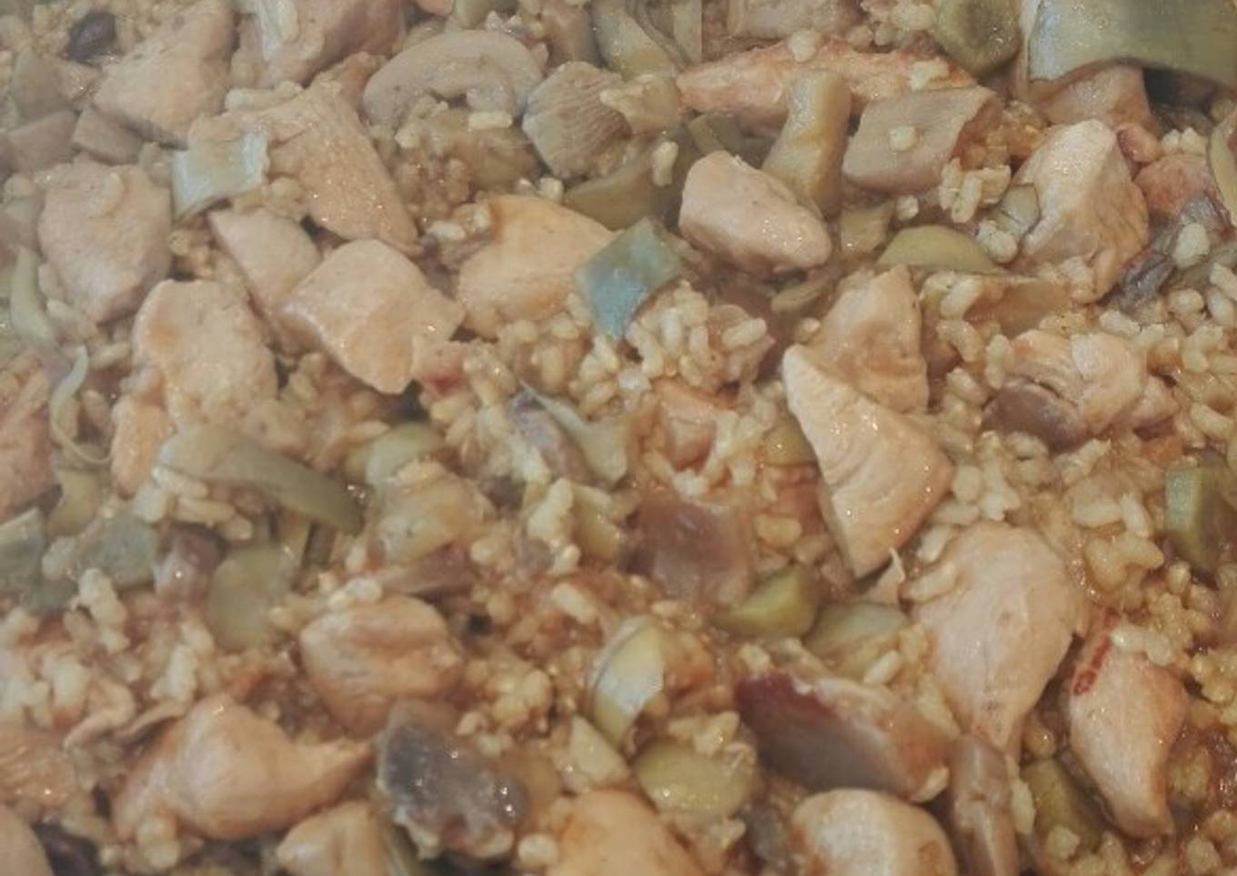 Arroz con alcachofas setas y pollo