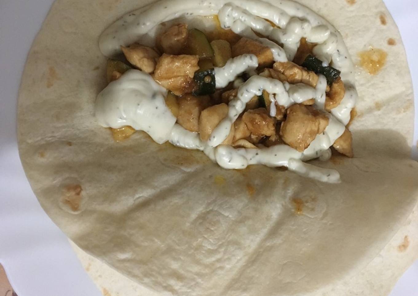 - Finalmente esperamos a que reduzca la salsa a nuestro gusto. Después emplatamos sobre la fajita y le rociamos un poco de salsa de yogur. Lo enrollamos y... ¡Qué aproveche!