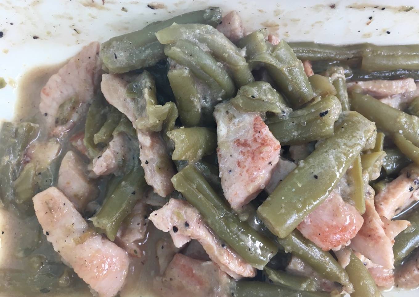 - Añadimos las judías previamente lavadas (yo utilizo judías de tarro o congeladas). La cantidad de judías la dejo al gusto aunque a mí me encanta que haya como mitad y mitad de judías y pollo.