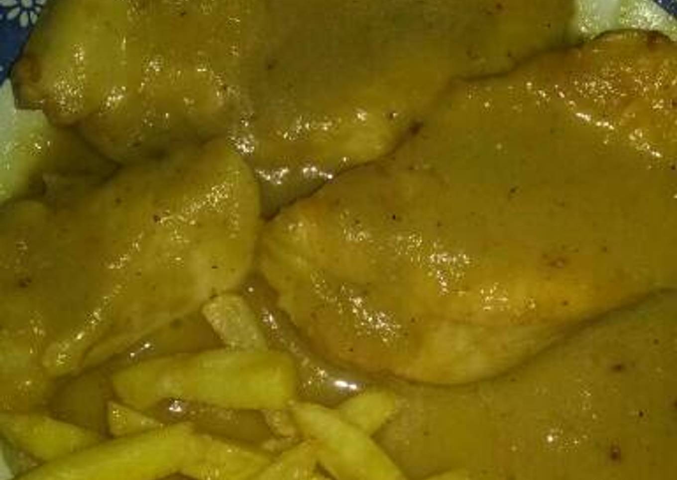 Puechugas de pollo con salsa de manzanas y puerro 😊