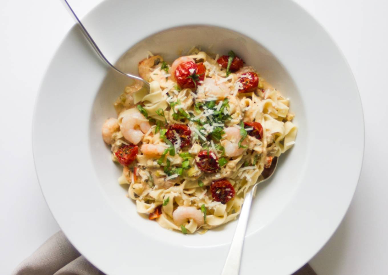 Instructions to make to make Fetuccine Con Gambas Y Tomates Confitados