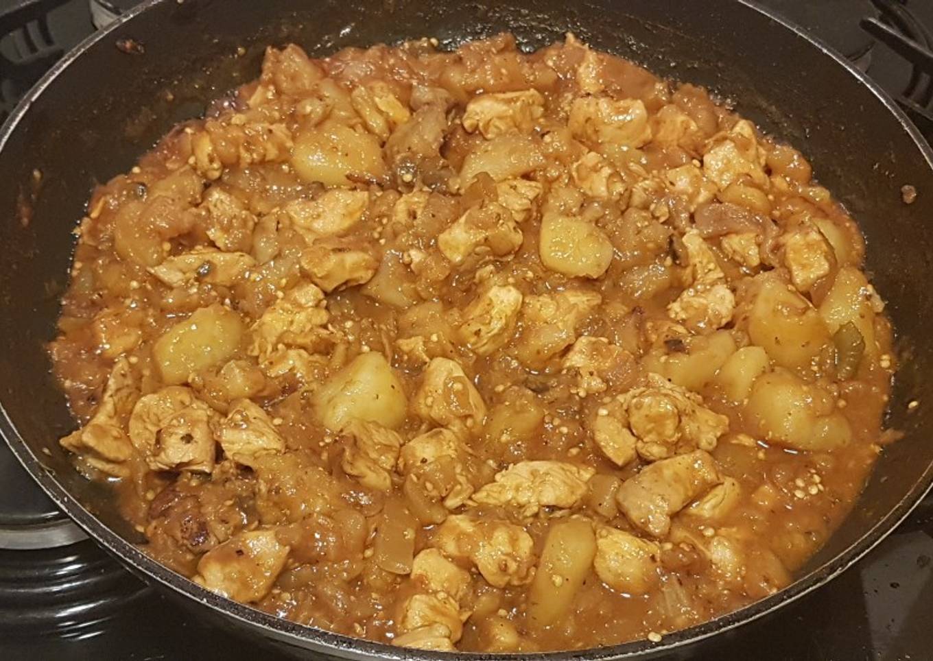 Pollo con Patatas, Berenjenas y Cebolla en Caldo a la Siciliana