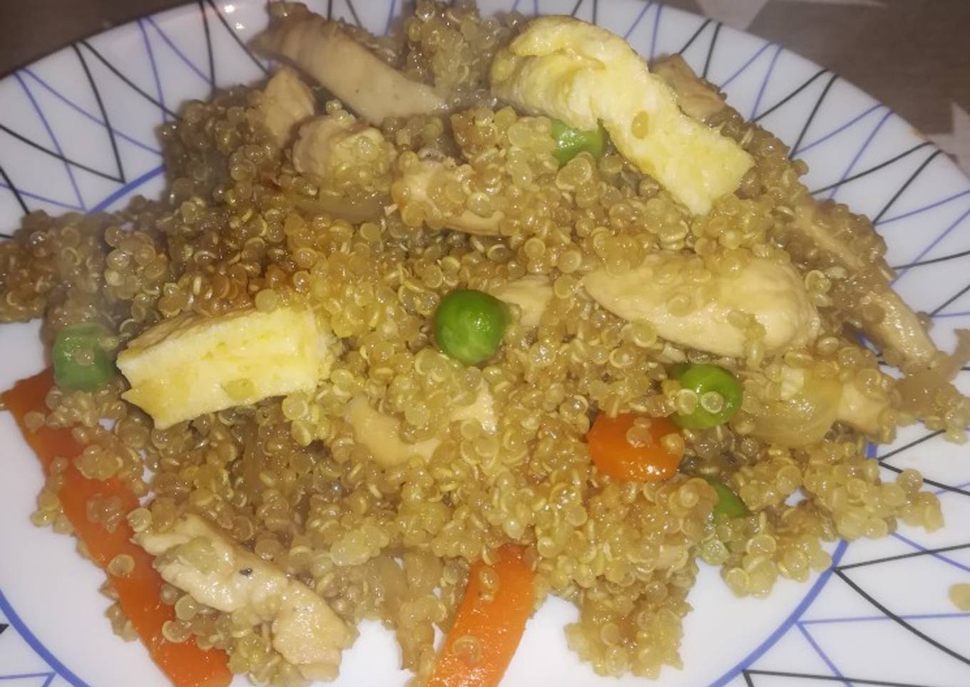 Hey everyone, hope you are having an amazing day today. Today, I'm gonna show you how to make a distinctive dish, Salteado de quinoa con pollo y verduras. One of my favorites food recipes. For mine, I will make it a bit tasty. This is gonna smell and look delicious.