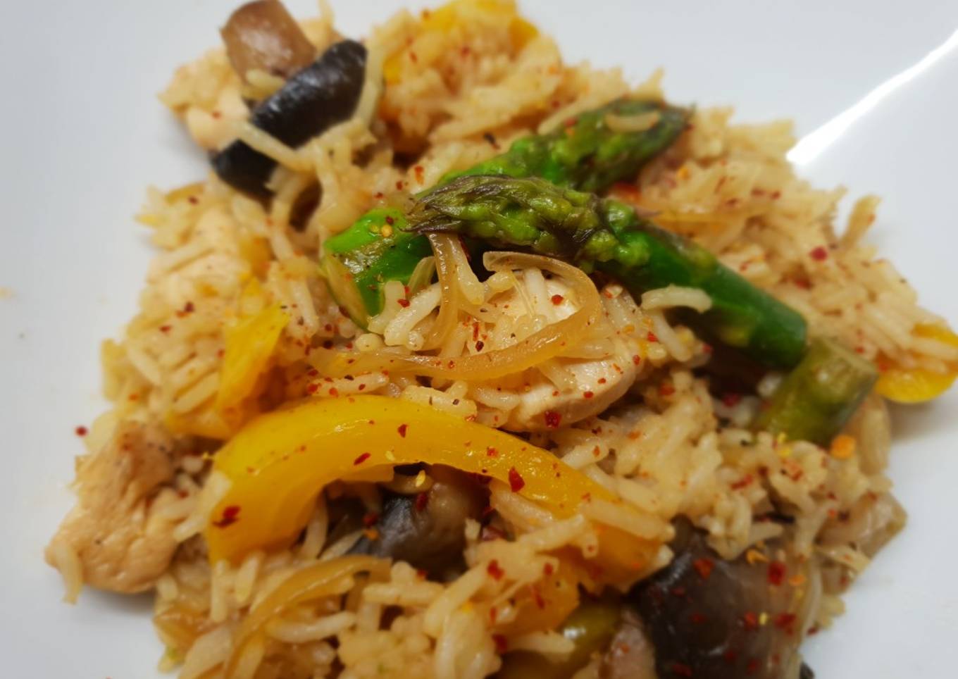 Arroz salteado con pollo y verduras sin gluten