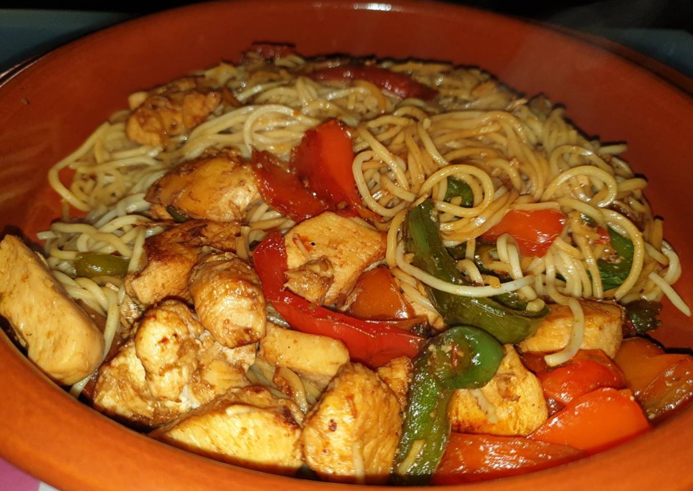 - Coceremos los fideos como marque el fabricante una vez cocidos bien escurrido los añadimos al sofrito de verduras y pollo rectificaremos de salsa de soja y serviremos en el plato