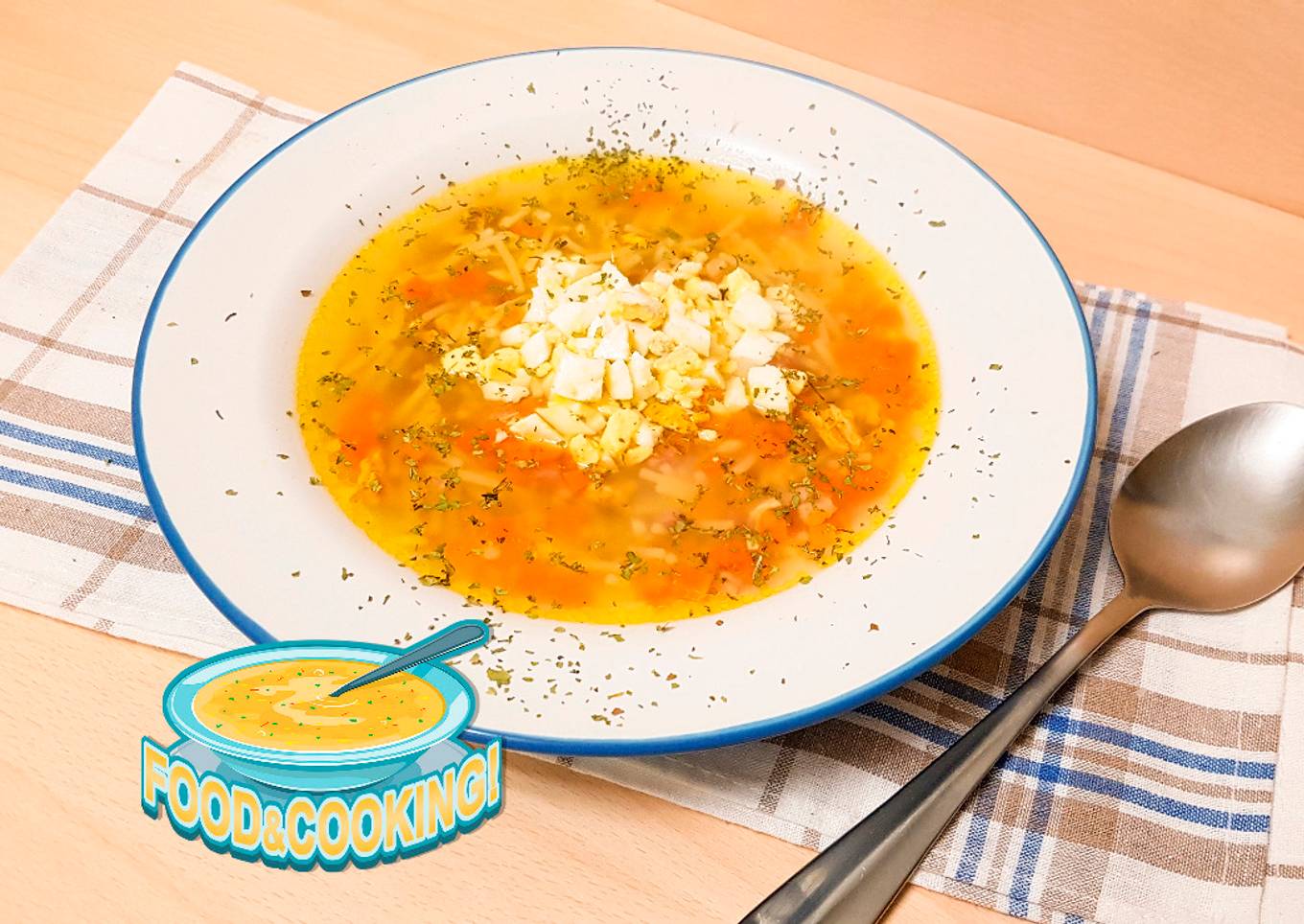 - Incorpora el agua y cuando corresponda incorpora el sobre de sopa siguiendo las instrucciones del fabricante. cuando falten 5 minutos para terminar añade la zanahoria. Pela y pica los huevos