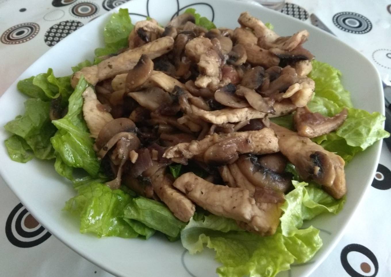 - Emplatamos poniendo Lechuga debajo y la preparación del pollo y champiñones arriba.