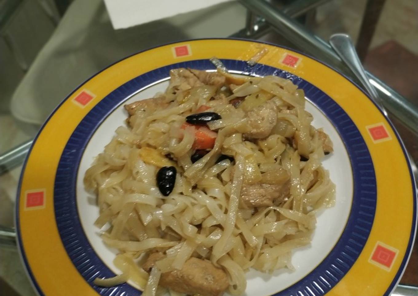 Hello everybody, it is Louise, welcome to our recipe page. Today, I'm gonna show you how to prepare a distinctive dish, Fideos de arroz con bambú, pollo y soja. One of my favorites. For mine, I am going to make it a bit unique. This is gonna smell and look delicious.