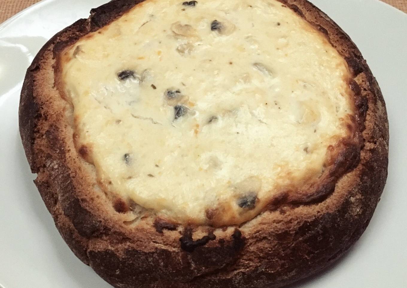 - Vertemos el contenido en la hogaza de pan hasta el ras y se hornea a 220° durante 30 minutos.