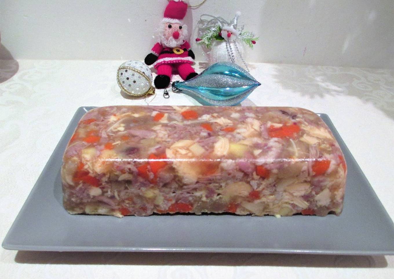 Terrina de mezclas de carnes en gelatina natural para la Nochebuena
